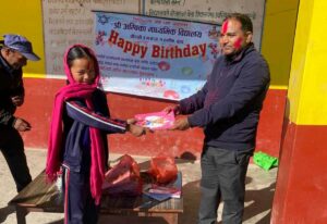 दाङ :- दाङको घोराही उप-महानगरपालिका – १ हर्नोकमा रहेको श्री अम्बिका माद्यामिक विद्यालयमा कार्यरत शिक्षक बिमल योगोले आफ्नो जन्मदिनको अवसरमा सोही विद्यालयमा अध्ययनरत केहि विपन्न,अनुसाशित तथा जेहेन्दार विद्यार्थीलाई न्यानाे शैक्षिक सामग्री वितरण गर्नुभएको छ । शैक्षिक सामग्रीको अभावमा विद्यार्थीकाे पढाईमा असर नपुगाेस र विद्यार्थी सिकाइमा उत्प्रेणा जागोस भन्ने उदेश्यका साथ अम्बिका माविमा अध्ययरत कक्षा १ देखि १२ सम्मका २४ जना विद्यार्थीलाई कापी र कलम वितरण गरिएकाे हाे । घाेराही उप-महानगरपालिकाकाे विकट विद्यालयकाे रूपमा रहेकाे अम्बिका माविमा अध्ययन गर्ने अधिकांश विद्यार्थी गरिव तथा असहाय रहेका छन् । ति विद्यार्थीलाई शैक्षिक सामग्रीको अभाव कारण पढाइमा असर नपुगाेस भनेर विपन्न र जेहेन्दारलाई शैक्षिक सामग्री वितरण गरेकाे शिक्षक याेगीले जानकारी दिनुभयाे । साे विद्यालयमा अध्यापन गराउने हरेक शिक्षकहरूले जन्म दिन पारेर विद्यार्थी सहयाेगका कार्य गर्दै आएका छन् ।